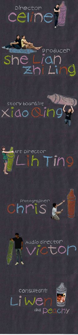 It's another group assignment for visual comm. STOP MOTION ANIMATION... urgh... it's time consuming. However, glad that i have awesome teammates and therefore the entire progress turns up to be an enjoyable and interesting one.~
